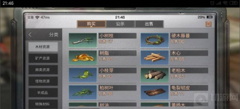 3.点击资源之后可以看到很多的资源,这个时候需要找到矿资源,在列表内的第二位就是矿资源。