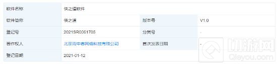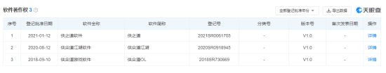 据天眼查页面显示,北京雨中客网络科技有限公司拥有《侠之道软件》的软件著作权,曾于2021年1月12日登记批准。