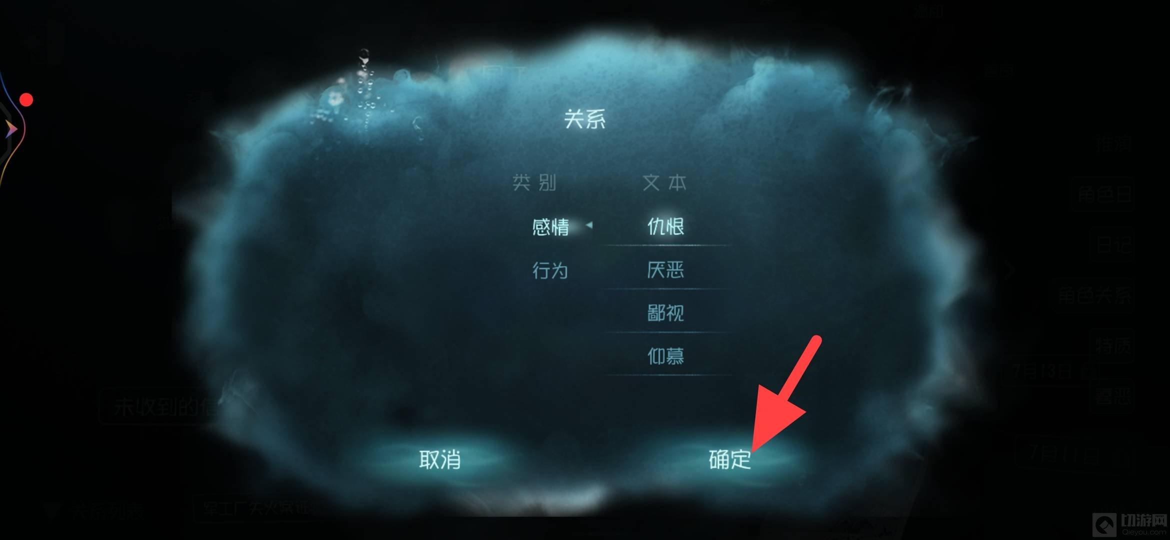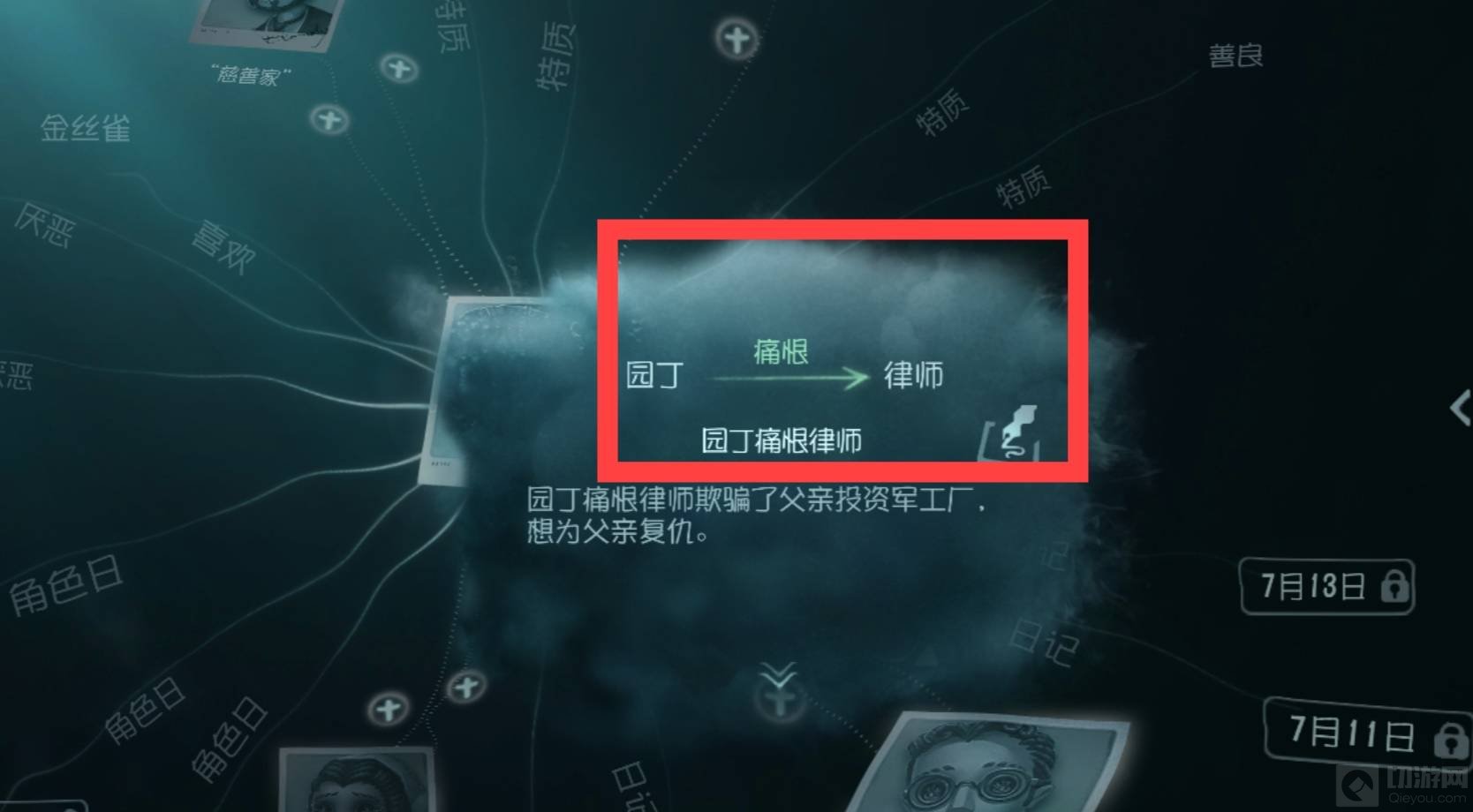 6,点进去之后会显示园丁对律师的关系,上面两个选项需要完成相对推演日记,下面会有自定义关系。