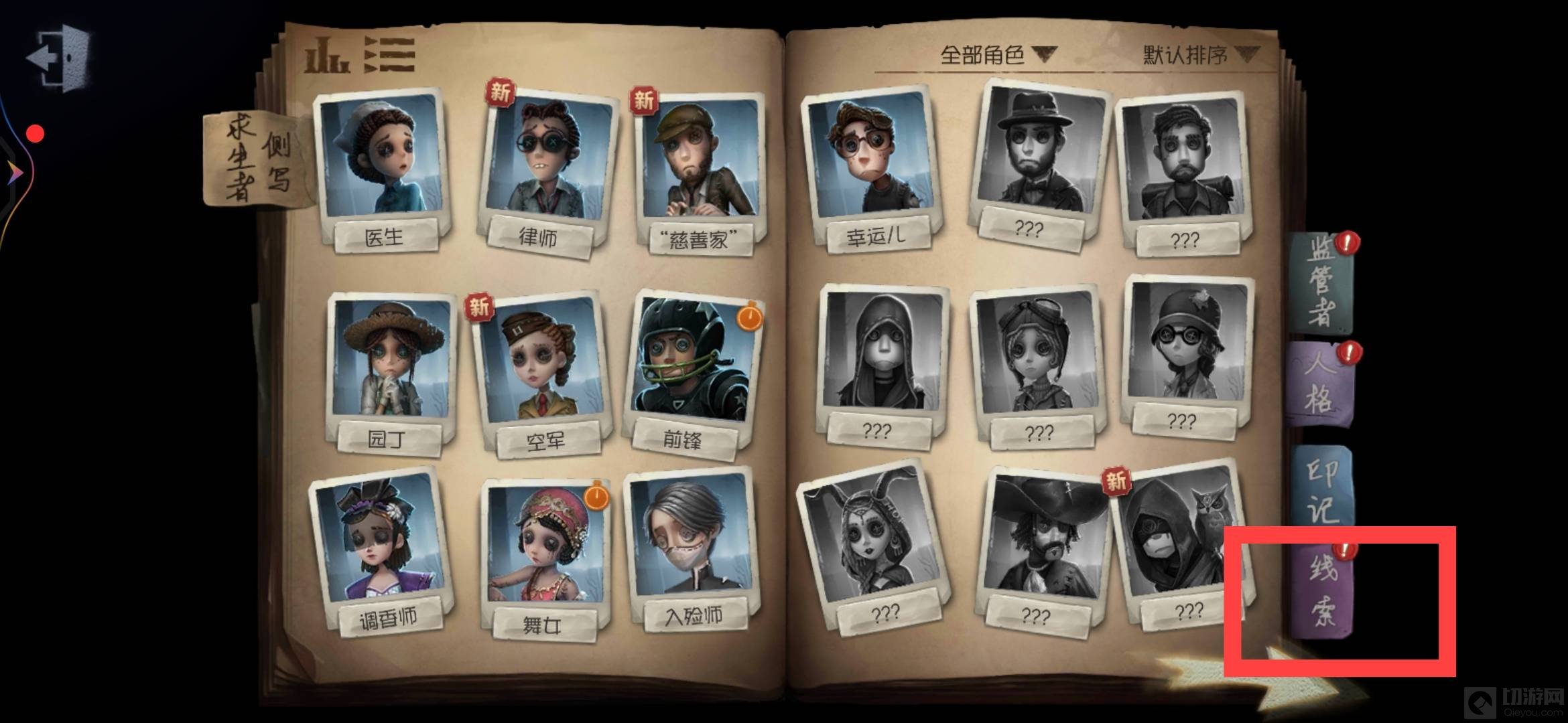 2,进去后会看到求生者,监管者等,点击“线索”。
