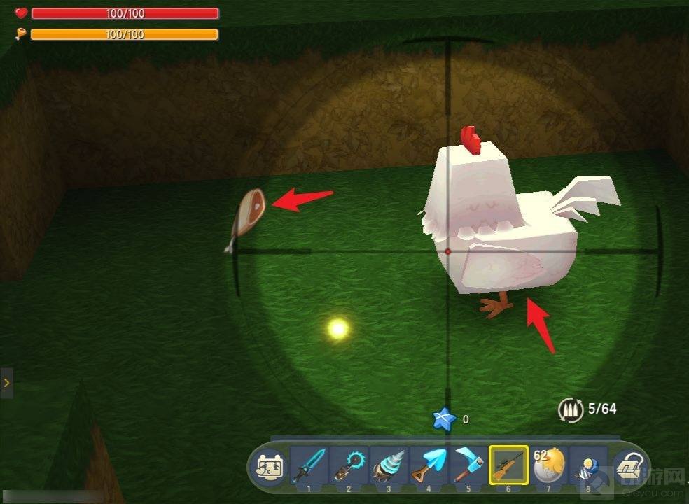 1、先进入迷你世界,在里面攻击鸡,可以得到鸡腿。