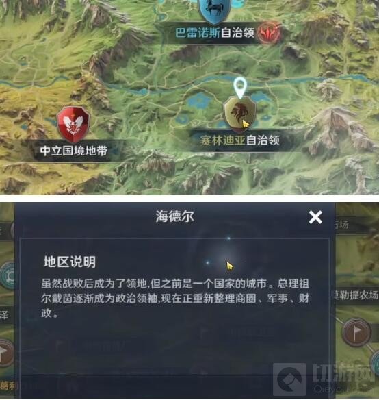 1、首先我们需要点开地图找到赛林迪亚自治领区域的,点击来到海德尔。