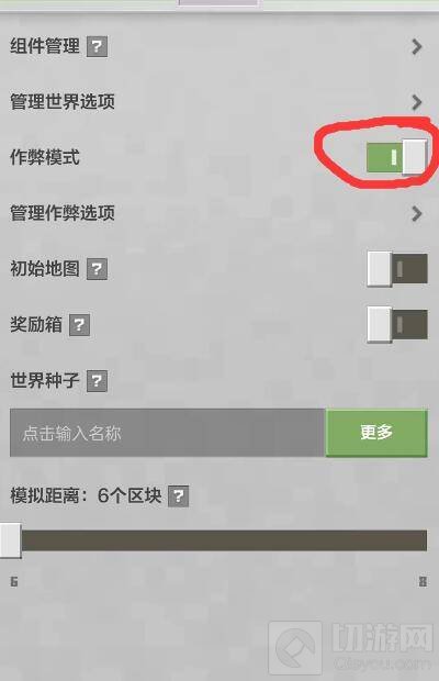 3,最后把上面的允许作弊按钮打开,就可以开启作弊模式了。