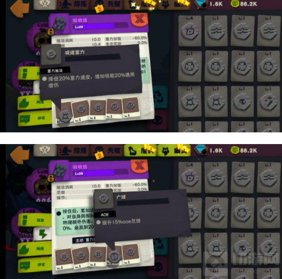 吸收盾,符文可以带减速蓄力,增加伤害,适合打boss,也可以带广域清兵快