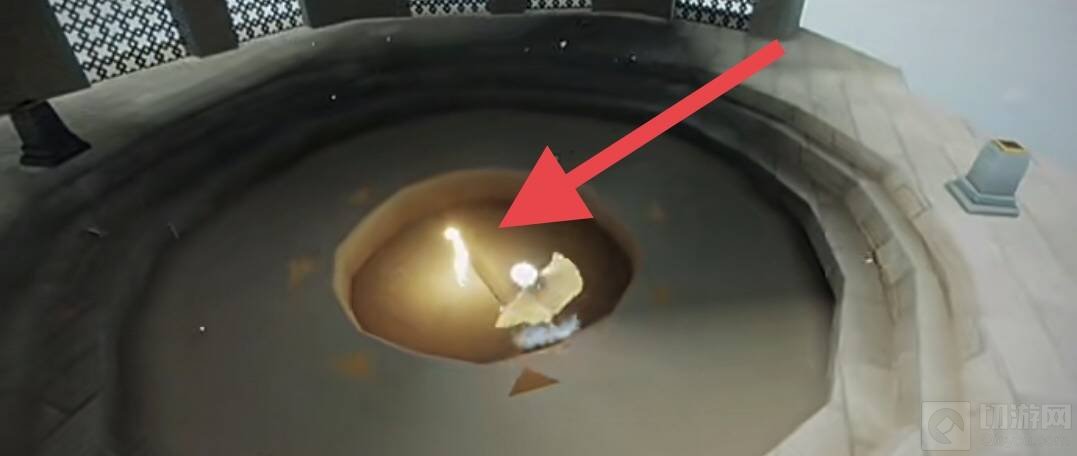 3、拿完小金人之后直接向右飞就可以看到类似井口的位置,从井口潜水进入水里,潜到一定位置之后就会看到一个向前的洞口,进口洞口就可以看到前方的小金人了。