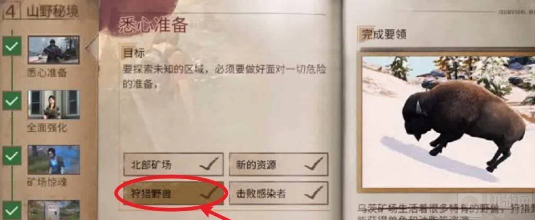 1.狩猎进入游戏,先接取生存日志里面的狩猎野兽任务。