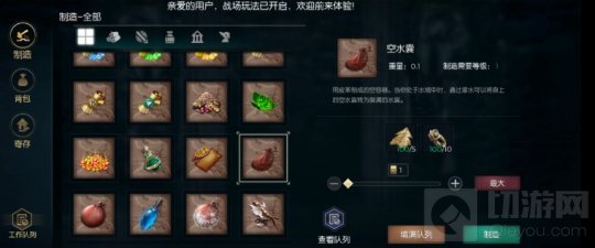 需要烤肉,水珠,骨粉,油脂,烤肉是限制所在,可以通过一些特殊手段获得但是并不是正途,主要烤肉依靠的还是迷你世界产出以及个人击杀所得,水桶里的被拿完了我们前期可以制作水袋;