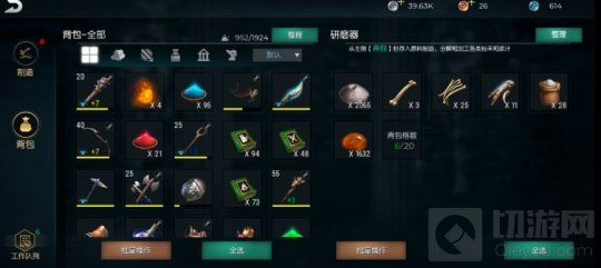 如图在研磨器中点击物品在右边的菜单选择分解他就会分解了,产出非常多,野兽之骨可以通过汲取生物获得,诅咒之骨需要击败骷髅怪获得,前期遇不到且不推荐。