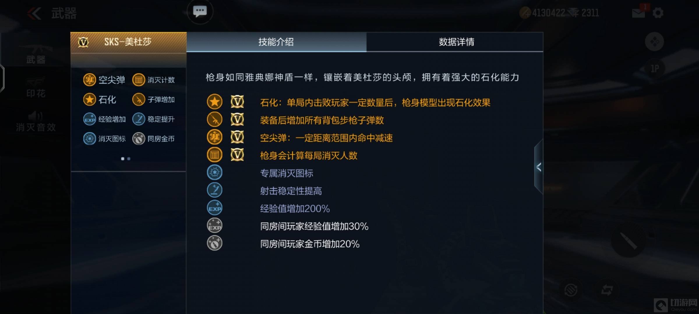 ks系列是单发武器,虽然单发比较麻烦,但是伤害还是挺可观的,sks美杜莎在击中敌人后可以造成减速,这是所有武器中独一无二的属性,从属性来看,还是值得入手收藏的。