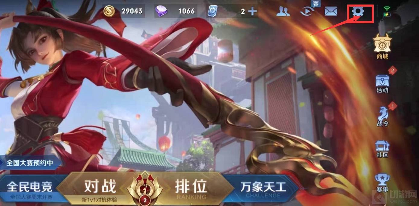 1.先在王者荣耀的大厅界面点开设置。