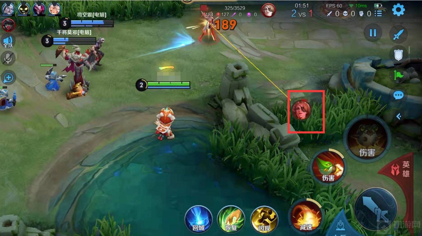 3.在实战中,当玩家靠近敌人时,右侧的技能轮盘旁边会出现敌方的头像(如下图),点击头像即可锁定敌方英雄进行攻击。
