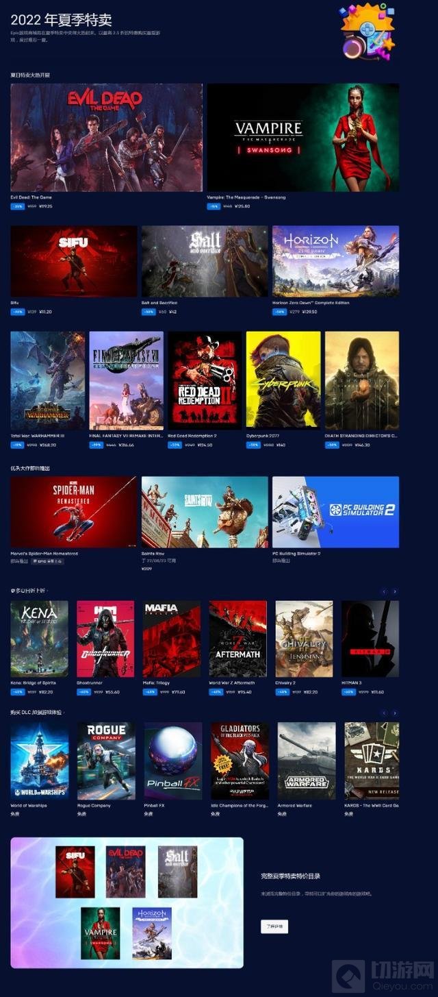 Epic夏季特卖页面:
