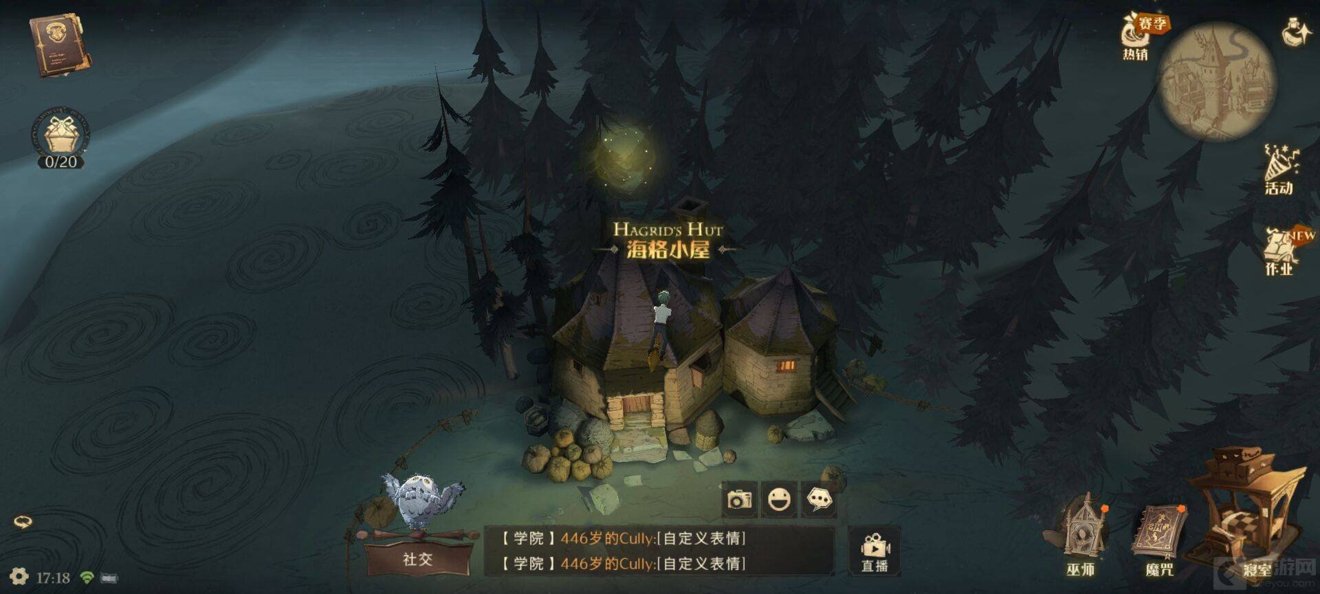 1、骑着扫帚往地图右飞,到禁林上空后往前飞来到海格小屋,降落点击查看鹰头马身有翼兽,会发现鹰头马身有翼兽受伤了。