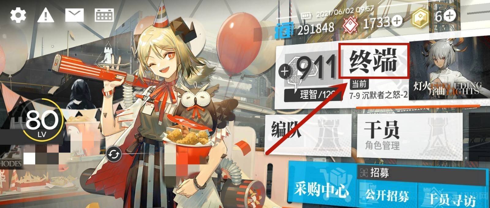 1.首先先来到游戏主界面,点击终端选项。