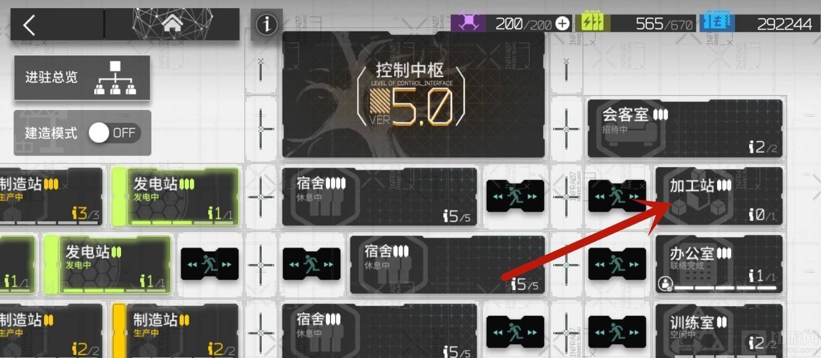 2.然后选择S5~9的关卡挑战,挑战通关后,在基建中找到加工站选项。