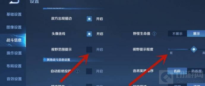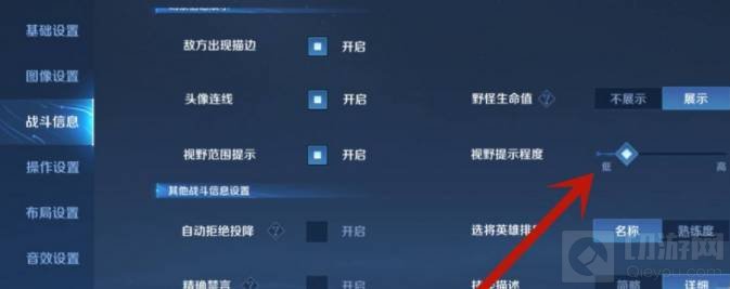 3、然后开启‘视野范围提示’,调节‘视野提示程度’。