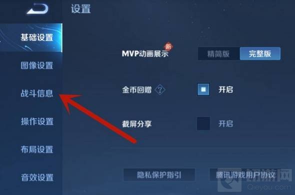 2、选择左侧的‘战斗信息’。