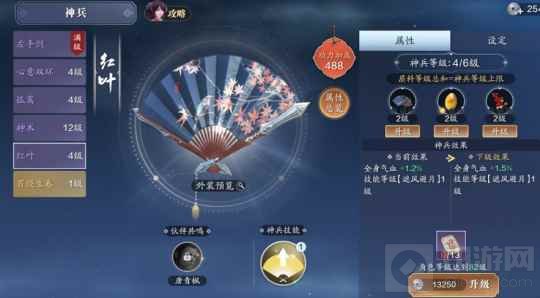 如果是追求属性的话,建议优先把神术/孤鸾(力道神术,气劲孤鸾)提升到12级,然后将心意双环和红叶提升到8级,接下来再去提升神术/孤鸾到15级,之后把心意双环和红叶提升到15级,最后再选择升满神术/孤鸾的另外一件。