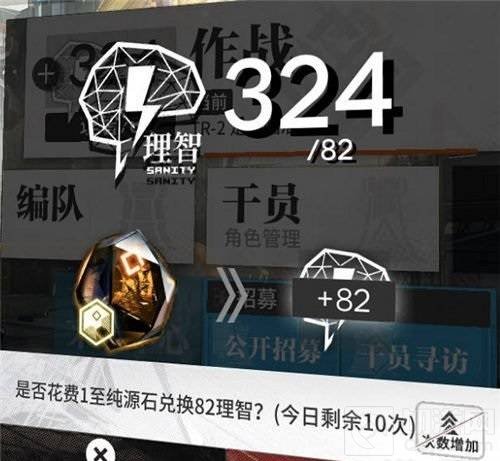 花费1至纯源石可以兑换8理智,每天限量兑换,理智可以用来闯关;