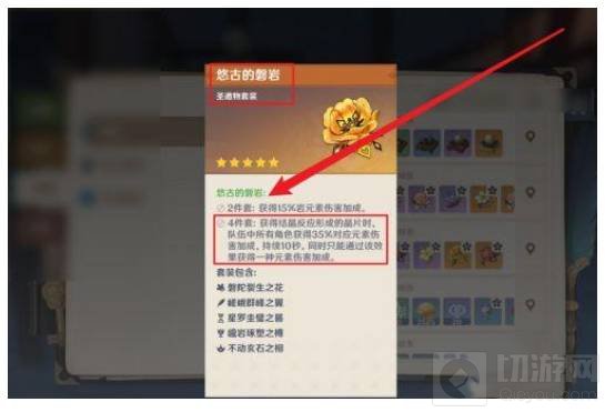 1、搭配‘悠古的磐岩’圣遗物套装,可以大幅提升荒泷一斗的岩元素技能伤害。