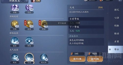 天气技能风攻、火攻、风火抗开放25~30级,共需5200点帮贡优先点满。