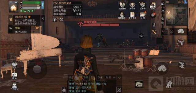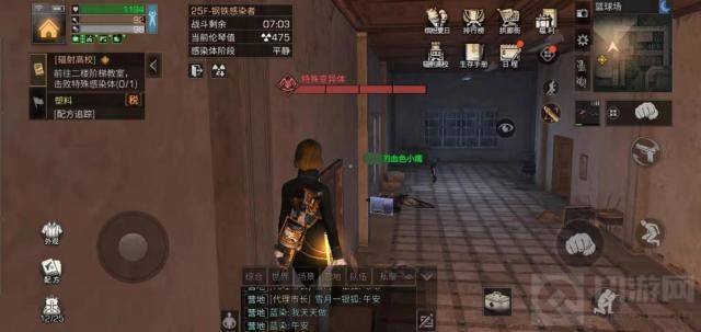1、25层只有一个任务,打boss。出电梯后就跑酷到二楼,二楼礼堂门是关着的,为避开追你上来的丧尸,跳到门后面的箱子堆,等丧尸走了,开门。