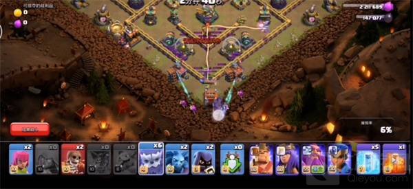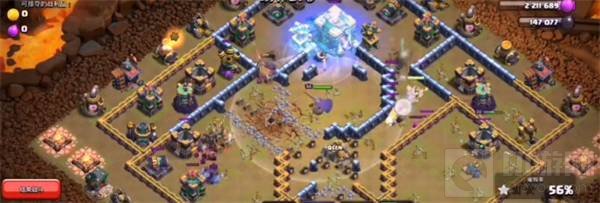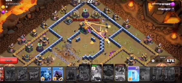 5.先下骷髅法术来吸引投石炮的攻击,补上两个骷髅法术吸引闰土和女王投石炮的火力。
