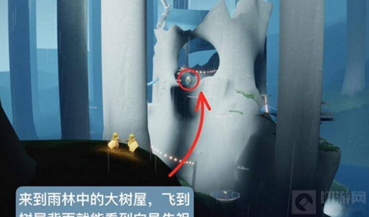 1、先进入雨林大树屋,向导先祖会换位置,飞到大树屋背后才能看到他。