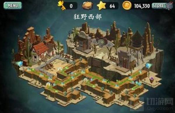 3、狂野西部:轨道上种双重射手,如果有空余阳光就种植卷心菜,出现淘金僵尸的时候,就在这一行的最左边放上地刺。