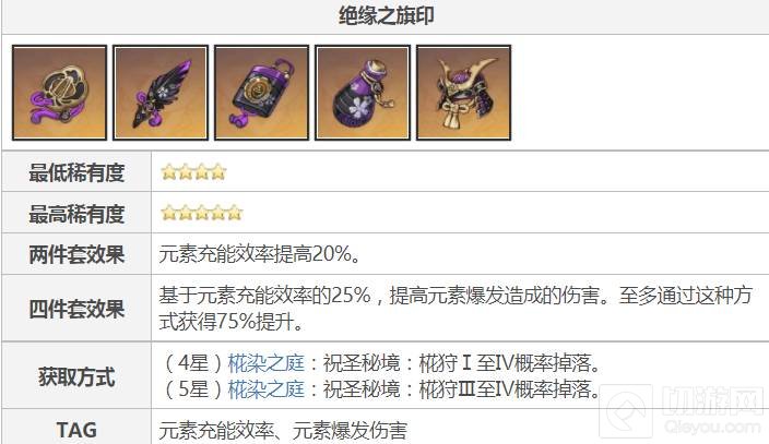 2、“薙草之稻光”这把武器十分适配“绝缘之旗印”,使用它的雷电将军装备这套圣遗物时记得带充能沙 雷伤杯,堆高充能效率。