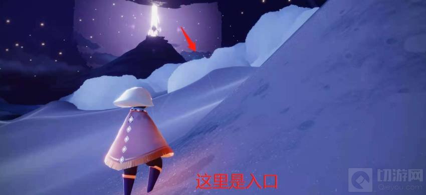 2、拾取好后转过身,面向入口处,根据箭头指示,追忆点灯人先祖的灯塔上面。