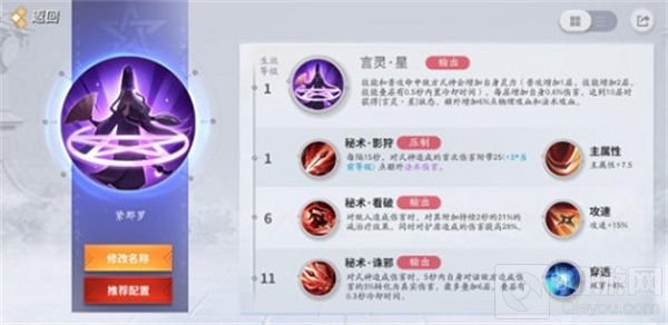 初级阴阳术选择主属性、攻速与穿透,攻速对于紧那罗来说方便快速切换音律,主属性与穿透用于增加伤害。