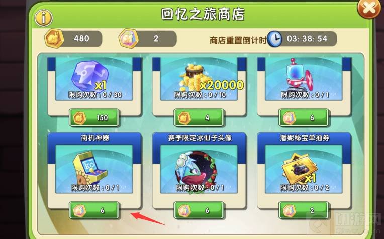 4、进入商店后,可以看到街机神器需要6个彩色蜗牛币兑换。