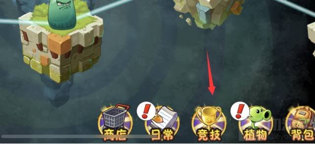 1、先打开游戏植物大战僵尸2, 点击竞技。