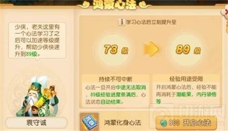 9.袁守城处可以开启鸿蒙心法,快速升级。