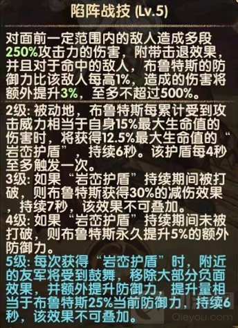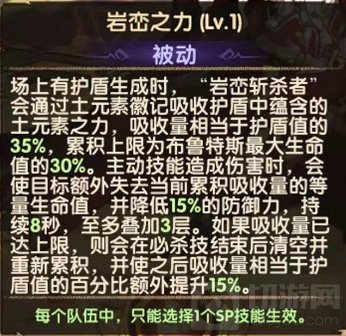 领域技能:岩峦之力将全队的护盾值转换为布鲁斯特的伤害。领取技能可以看到,相比以往的sp英雄,sp狮子更偏向于单打独斗·技能介绍说主动技能造成伤害,但实测目前普通攻击也会附加伤害。·sp狮子的普通攻击为2连击,但百分比为2次100%单体伤害,可以高频附加领域技能伤害。(看看你,风属性的剑圣,拉跨的普攻)