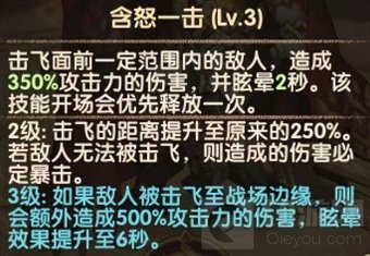 三技能:含怒一击主要控制技能。