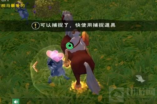 4.敲晕蓝蜥蜴后,使用饲料喂食提升好感度,等蓝蜥蜴头上出现爱心,显示:可以捕捉了,快使用捕捉道具。