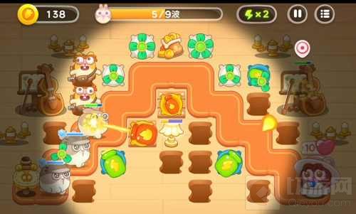 后面滑板兔会越来越走,看看我们自己火力,不够建立炮塔记得留下一些钱补地板。