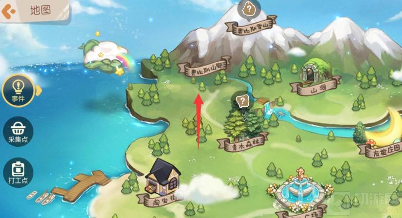 2、接着点击奥比斯山脚进入。