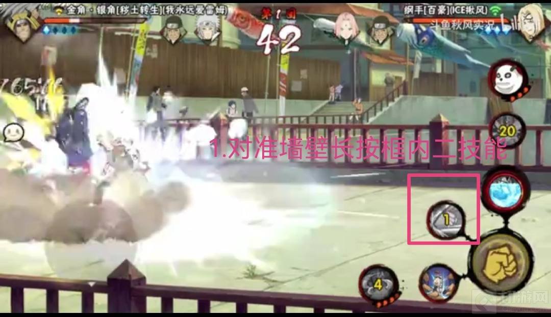 1.对于百豪纲手这一忍者来说,对准墙壁长按释放二技能“金豪拳”则会弹墙。