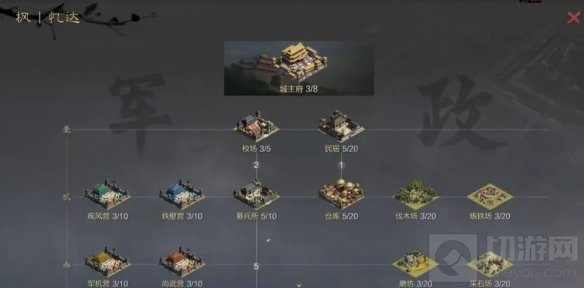 3.最后一种情况,非主流丐帮开荒队,老老实实9级再开始打4,三觉醒就是胜利。如果有南华这种最简单的4级地,如果打平了,毫不犹豫,直接撤退,哪怕一直平到10级都可以!一般来说,第一种情况在主力打两次4级地之后,便来到了第五章,另外两种情况,主力打4之前就到了第五章。此时该秒的任务直接秒,建筑等级如图所示: