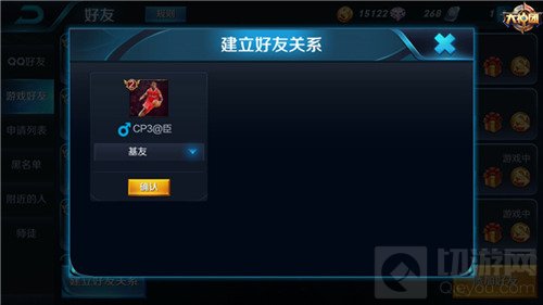 第三步就是建立关系了,通过上两步,当与好友间的亲密度达到上限600时,就可以建立基友关系了。先是在建立关系界面选择好友关系为基友,然后会向好友发送建立关系的请求,通过后就正式与好友建立为基友关系了。