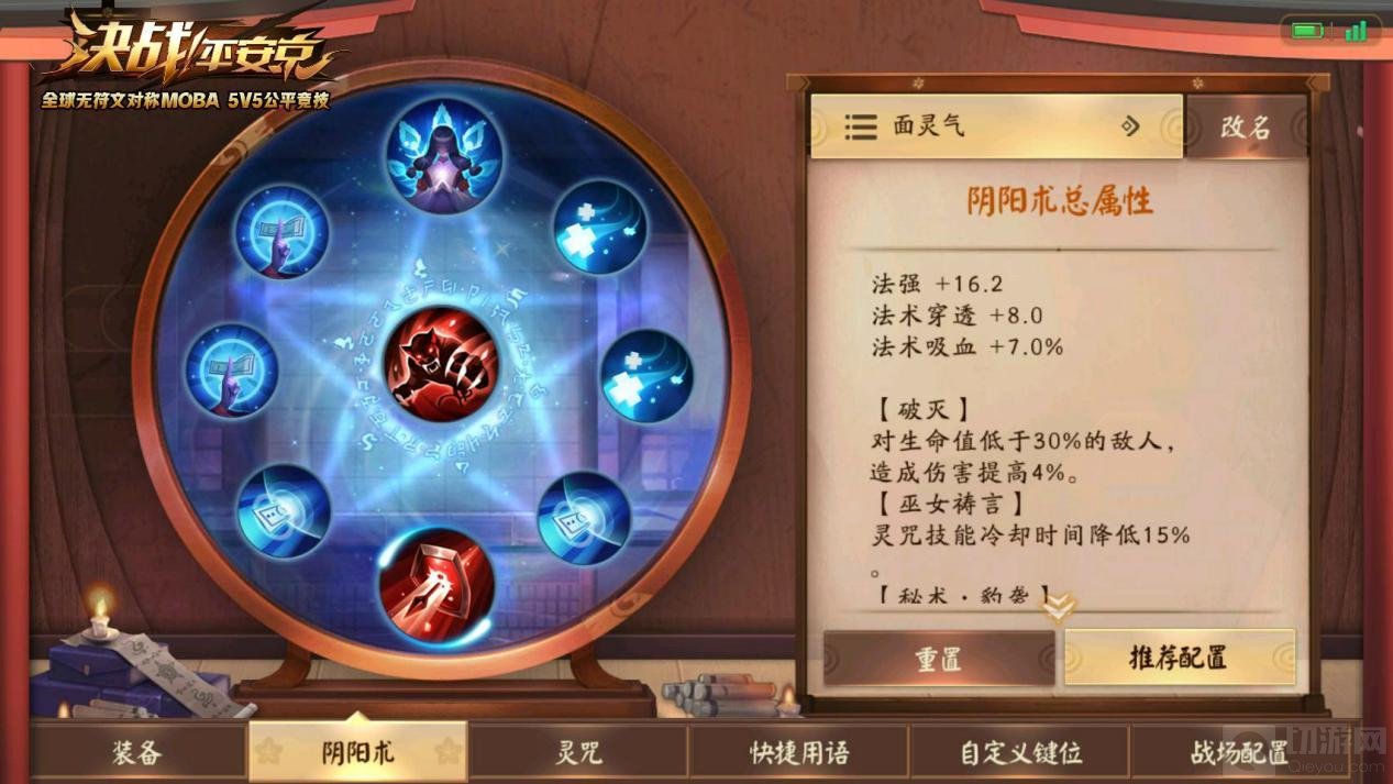 选用巫女祷言,可使灵咒技能冷却时间降低,大大提升灵咒技能在实战中的使用频率。选用破灭能对生命值低的敌人提高伤害。