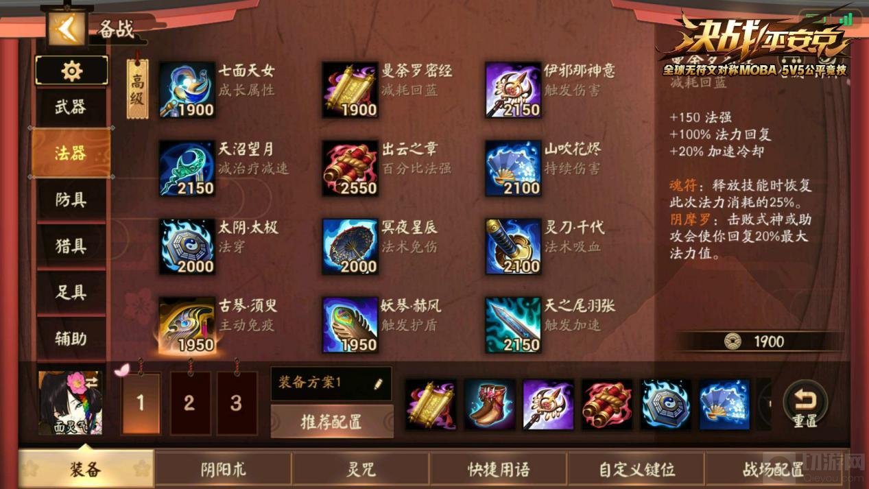 如果想要选用持续输出爆发路线,建议曼茶罗密经+鬼袭之靴+伊邪那神意+出云之章+太阴·太极+山吹花烬;