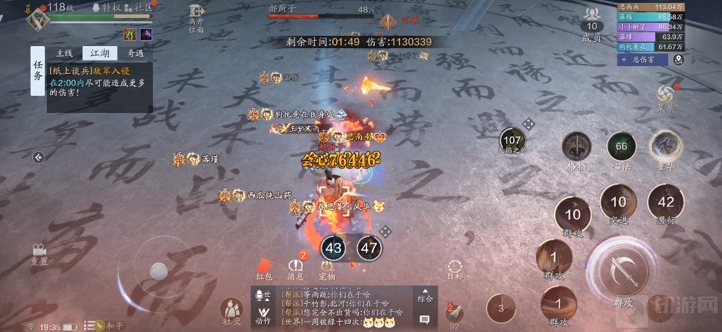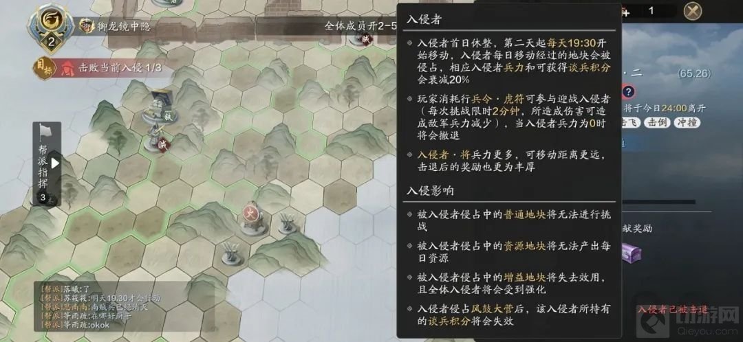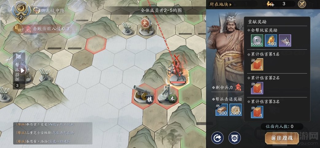 2)击败每个入侵BOSS都能获得纸上谈兵资源,积分等。并且全帮玩家都会获得海河令和兵法残页奖励,输出前三的玩家还有累计伤害红包(参考江山)。