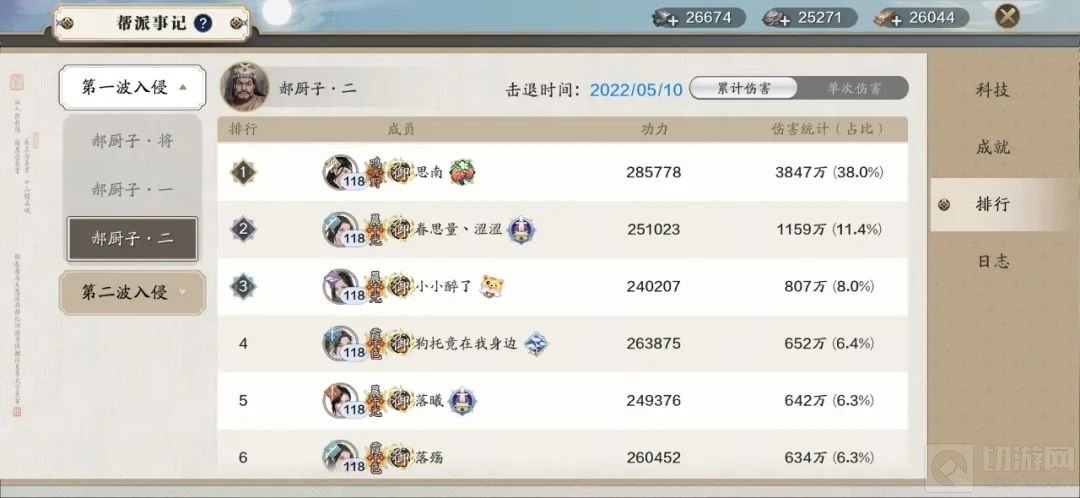 6)只要有完整一个团的帮会一般都能在当天击杀完所有BOSS,如果帮会人数较少可以在第二天重新刷新虎符继续迎敌。7)入侵记录和玩家伤害都会在帮派事记的排行中显示,另外每周的BOSS是不同的,将会迎来4个耶律兰的入侵。