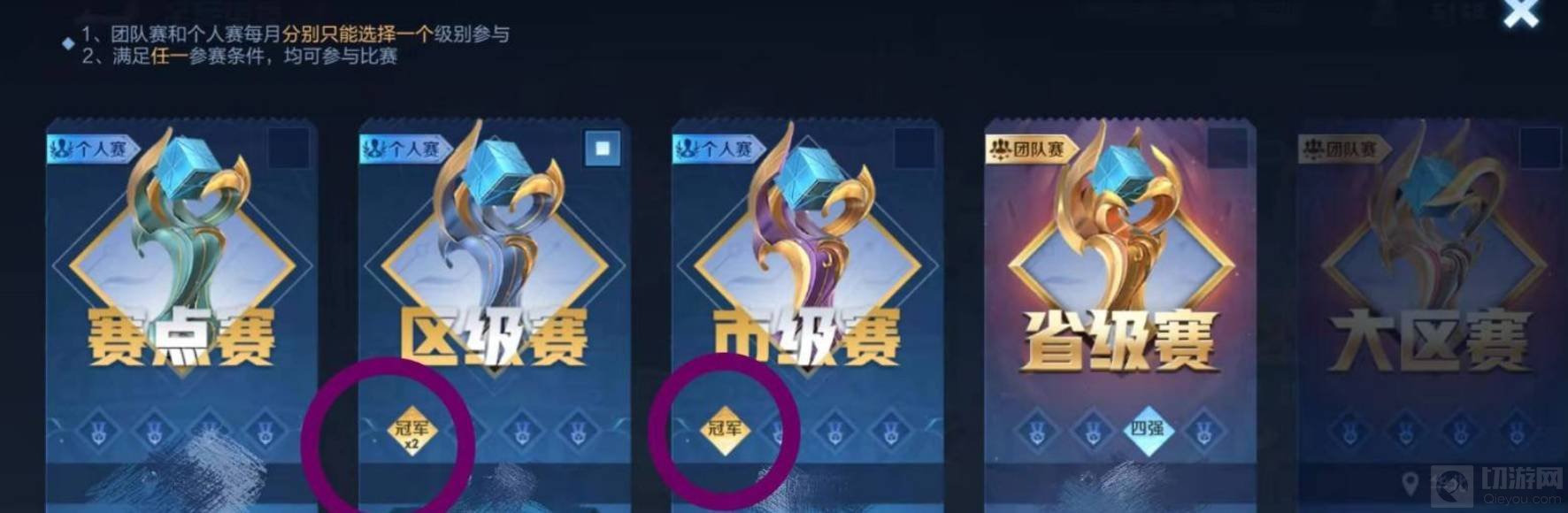 2. 只要玩家组织的队伍获得超过三次及以上的冠军,整个队伍的玩家就都可以获得三冠王的称号了。
