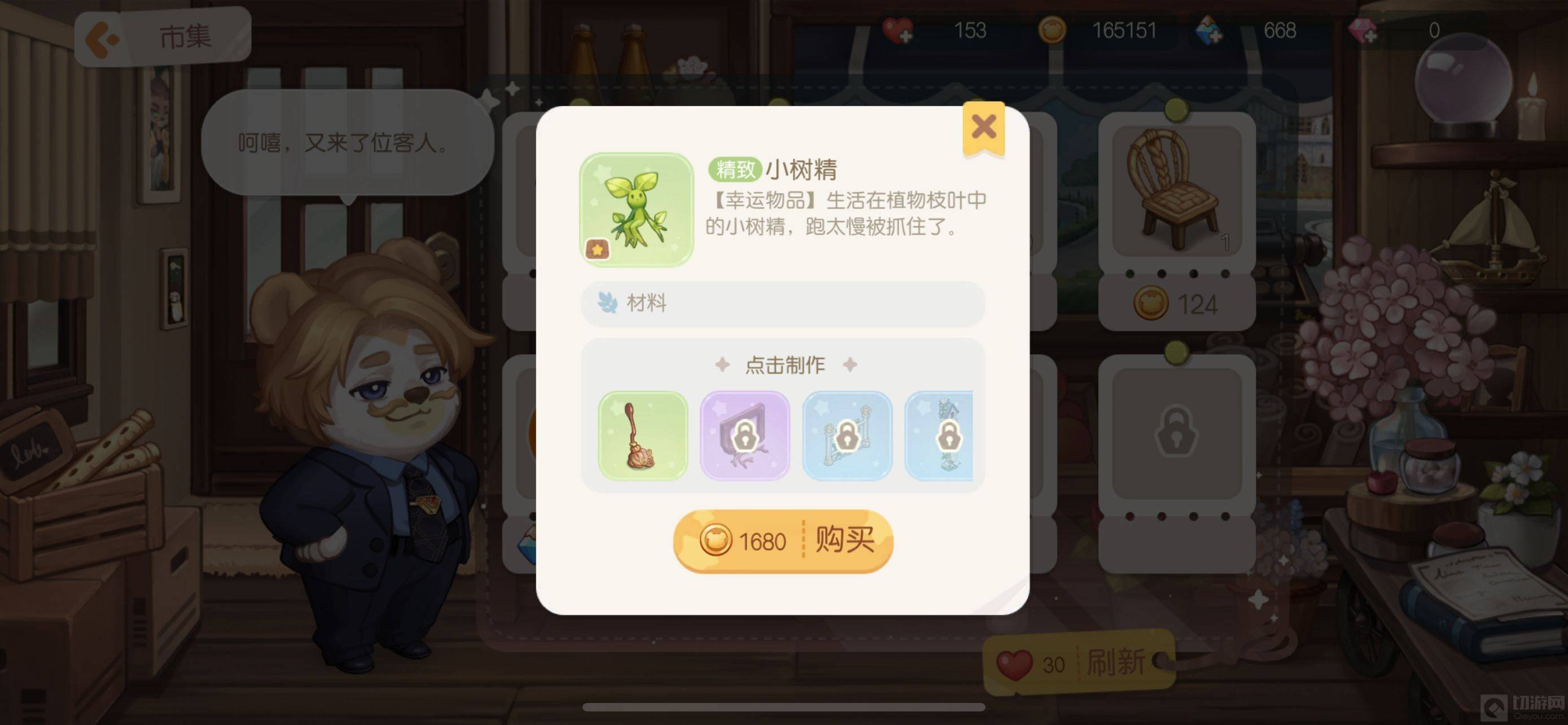 1、小树精可以通过在市集购买获得,如果市集中没有的话,可以点击下方的30个爱心进行刷新。