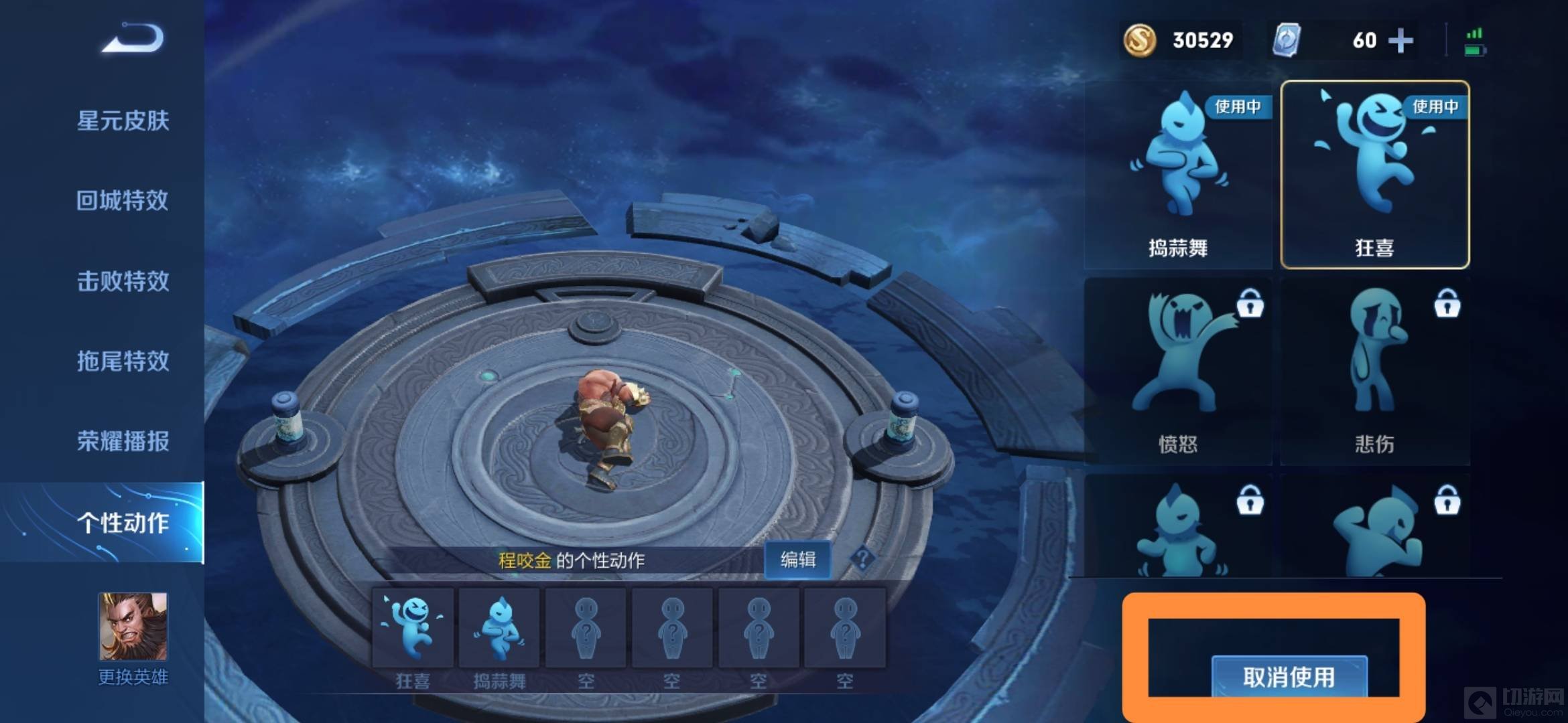 6、当然如果想取消动作的玩家也可以在动作界面点击正在使用动作的下方的“取消使用”按钮,在游戏中就无法进行动作使用了。